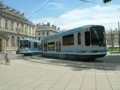 Grenoble was the second town in France (Nantes was the first) to reintroduce the tram in 1987, having abandoned the system in 1952. It glides through the city like an electric snake – in fact, it’s almost as dangerous because it is so silent. You are forever having to cross tramlines as you walk through town and the tram has a habit of creeping up on you. The driver will eventually ring his bell – if he can be bothered - but only at the last minute when (in my case) a hundred bored passengers will be treated to the spectacle of a plump, middle-aged Englishwoman suddenly taking on the expression of a Japanese cartoon character and leaping either to safety or into the path of the tram coming in the other direction. For some reason, motorists and cyclists are allowed to use these routes too, so crossing the road is like trying to weave a path through a Dodgem ride in full swing.