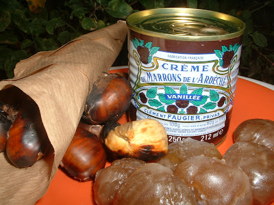 However, France has to import two-thirds of the total chestnuts they consume, mostly from Asia. And they are very fond of them. From October onwards, the smell of roasting chestnuts wafts through the city streets from chestnut sellers' stalls - although three euros for a small cone is a bit steep for something you can pick up yourself in the local park. It is, of course, unthinkable for the French to stuff their turkeys with anything other than chestnuts (my dehydrated sage-and-onion mix has never met with great success here) and those famous marrons glacés - candied chestnuts - are as essential to their Christmas as a tin of Quality Street is to ours.